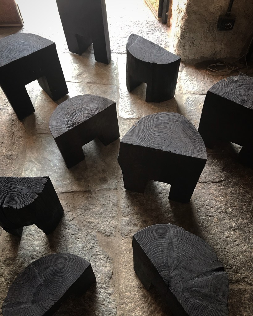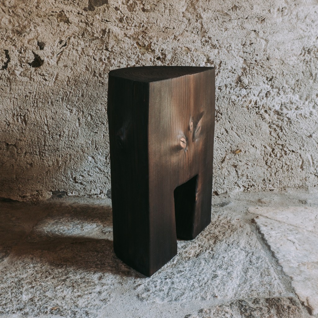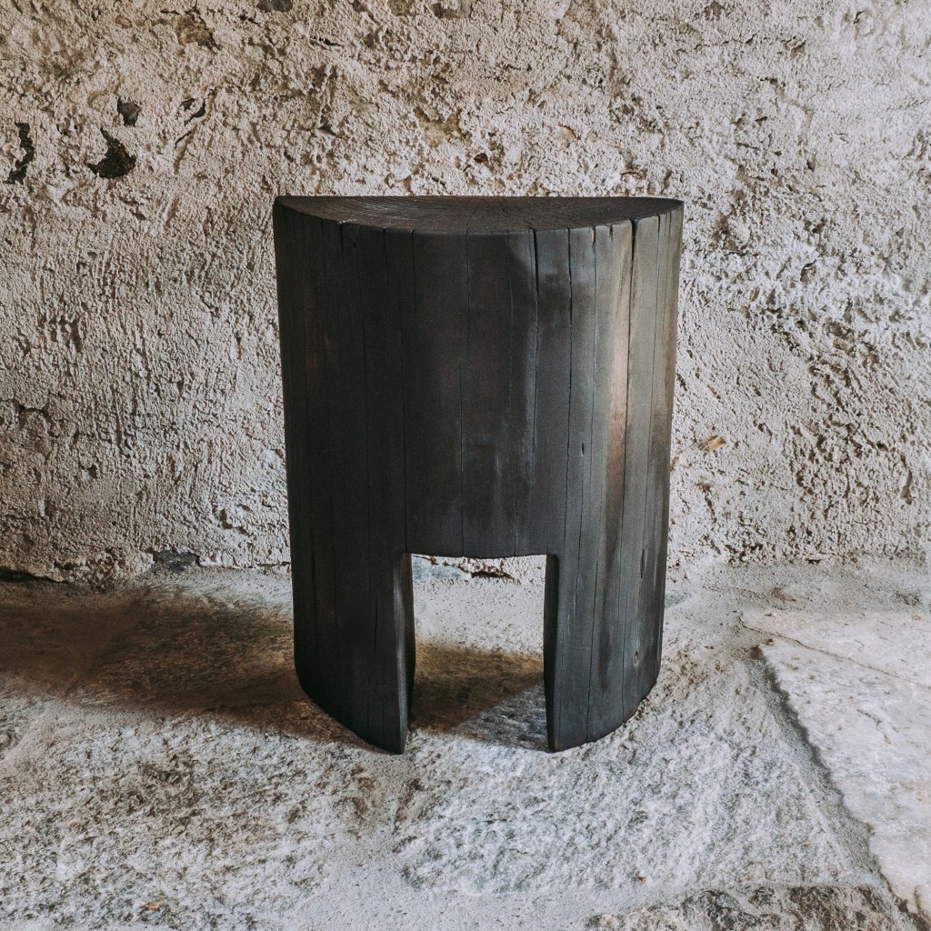 Casetta stools are made directly from a tree trunk, hand carved and treated with the ancient Japanese technique of Shou Sugi Ban, the art of preserving wood using fire. This procedure, ecological and completely natural, protects the wood by making the surface waterproof and so ideal for the outdoor.