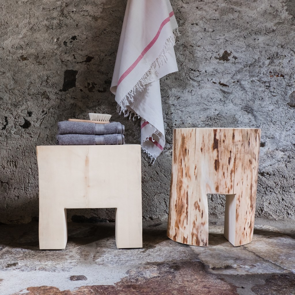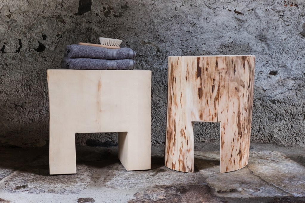 Casetta is a collection of stools and sculptures that are made directly from the tree trunk, each one conceived with the simplest shape in mind.