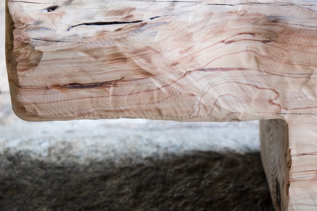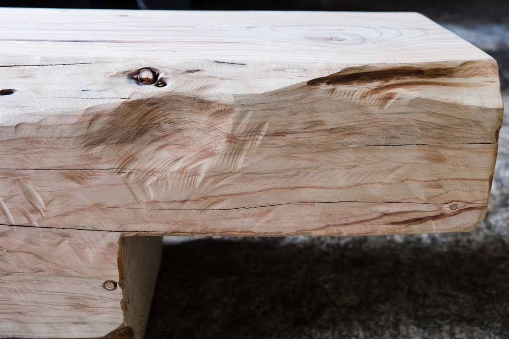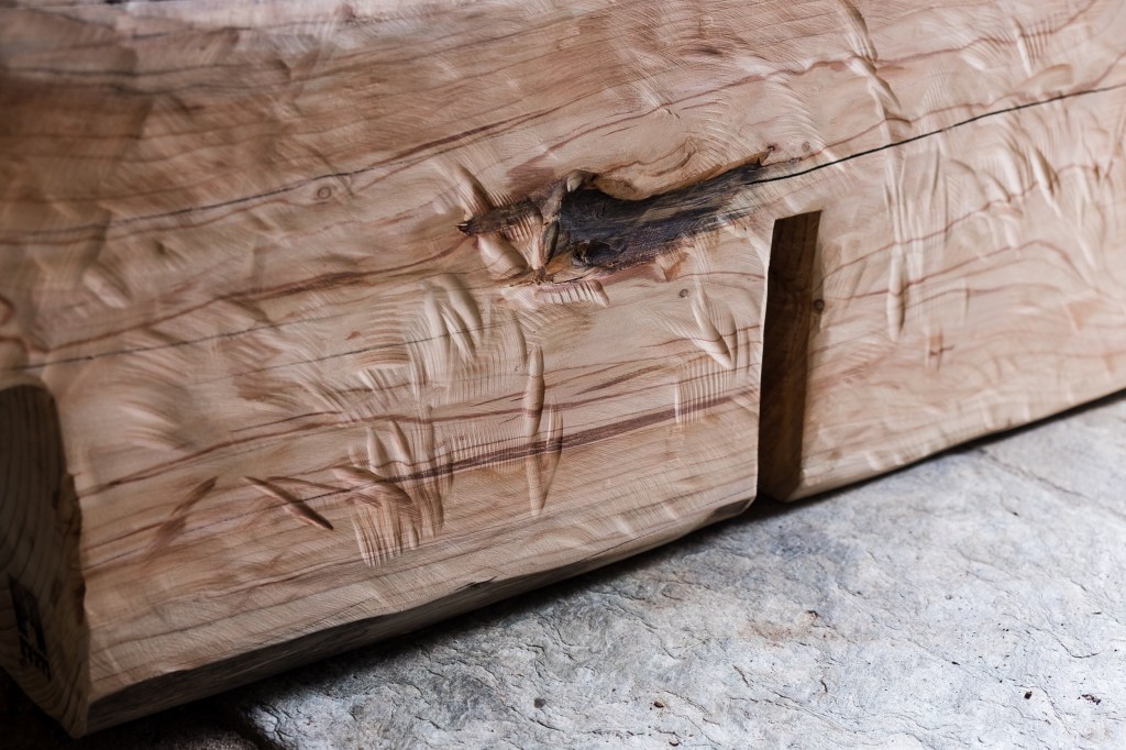 This cedar bench is made directly from a tree trunk, then carved by hand and treated naturally. The timber, cedar, has a strong balsamic and aromatic scent. The markings, the result of woodworking, give character and authenticity to this piece. The blonde bench fits perfectly at the entrance area, in the corridor or as a bedroom bench. Any veining, movements and changes in the appearance of the wood are the result from the natural settlement of the wood and are intrinsic characteristics of this product.
