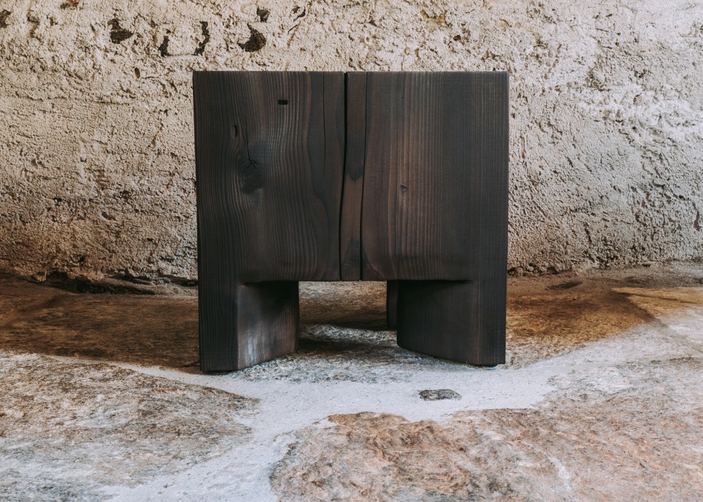 The Skelly Cube is made directly from a tree trunk, carved by hand and preserved with the ancient Japanese technique of Shou Sugi Ban, the art of preserving wood using fire.