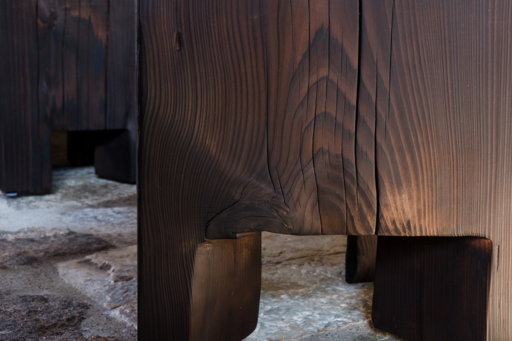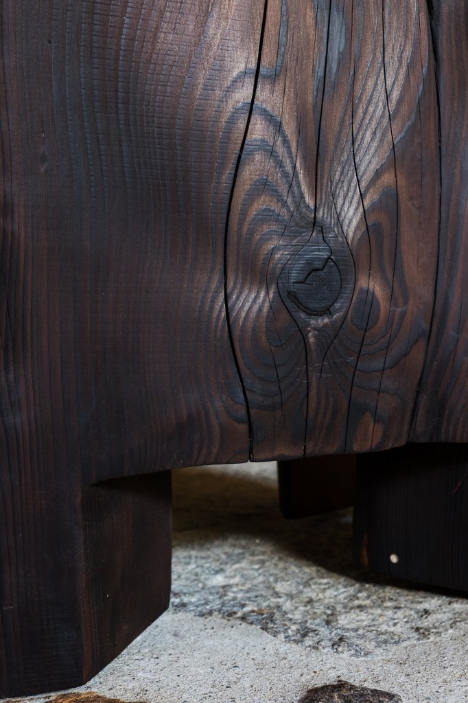 The finish, the result of the charring, is lustrous and silky. This procedure, ecological and completely natural, protects the wood by making the surface waterproof and so ideal for outdoors.