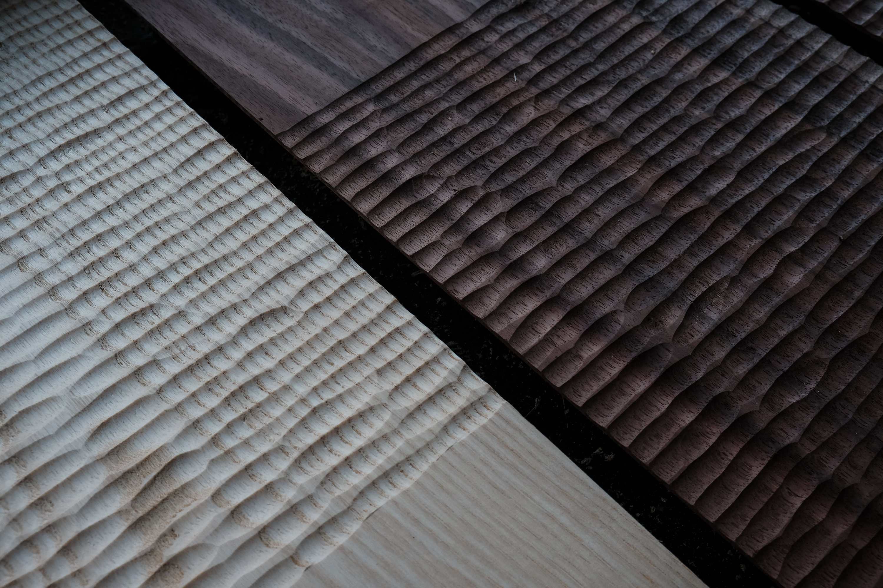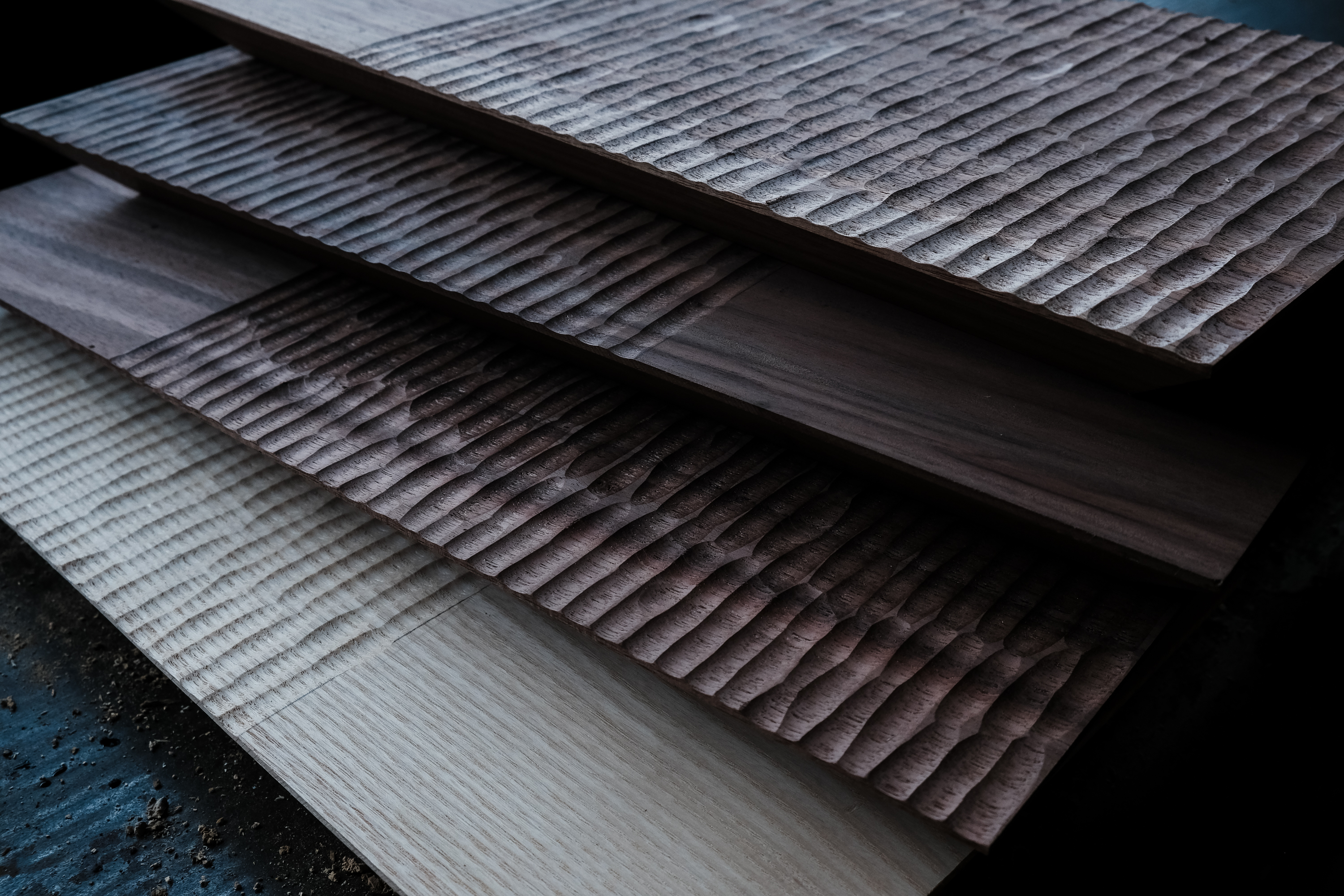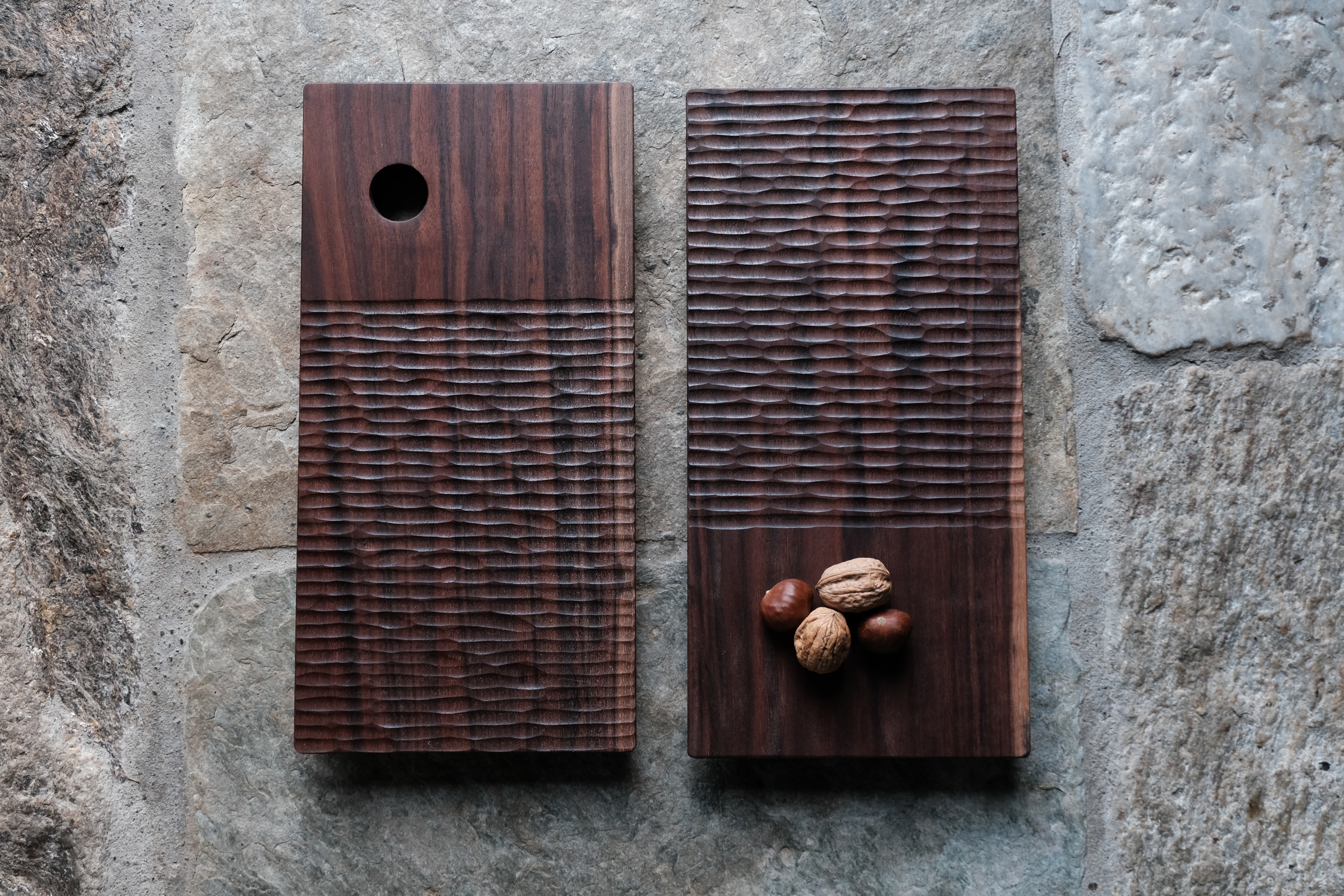 Stunning hand carved serving boards, in walnut and Ash. Ideal for food presentation (treated with a natural finish so suitable for food) or simply to give elegance to your home kitchen and tables. All boards are individual, each hand carved with a modern and stylish pattern with a beautiful bevelled undercut. Each piece is one-of-a-kind. All made to order.